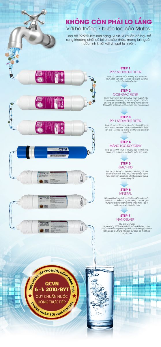 Máy lọc nước Mutosi MP-370U với 7 cấp lọc tiên tiến